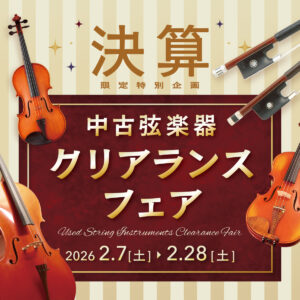 楽器種問わず、弦楽器の本場ヨーロッパより仕入れた良質な入門用楽器から、新作イタリアン楽器、厳選したオールド・モダン楽器まで幅広くご覧いただけます。試奏室を完備しており、ゆっくりと音色を確かめたうえで楽器をお選びいただけます。これから楽器を始める方や学生さんに向けたフェアなども定期的に開催。専門店として楽器以外にも楽弓、弦や小物、ケース等、充実したラインナップでお客様をお迎えいたします。