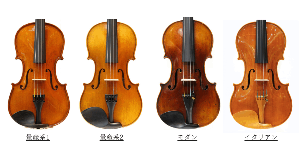 ここで色んなバイオリンを見比べて自分の好みがどんなものか考えてみてください。
