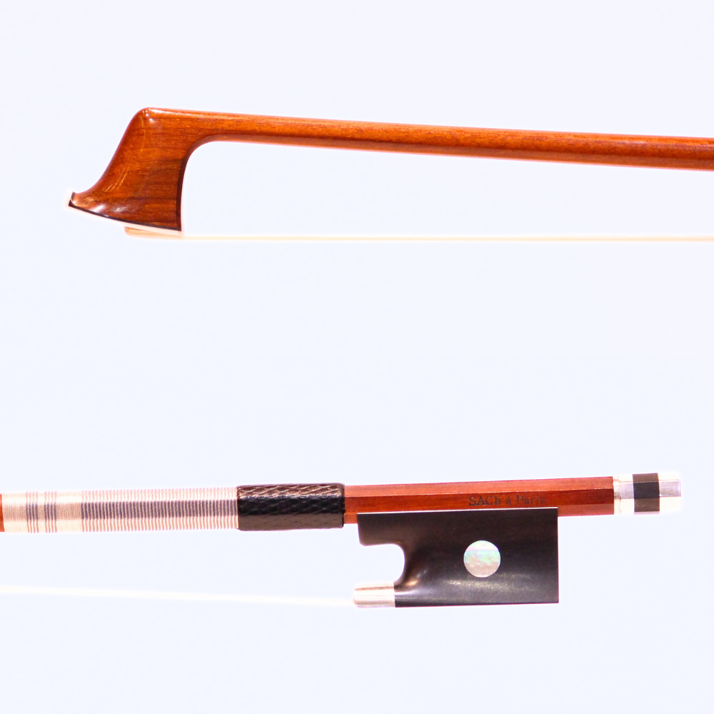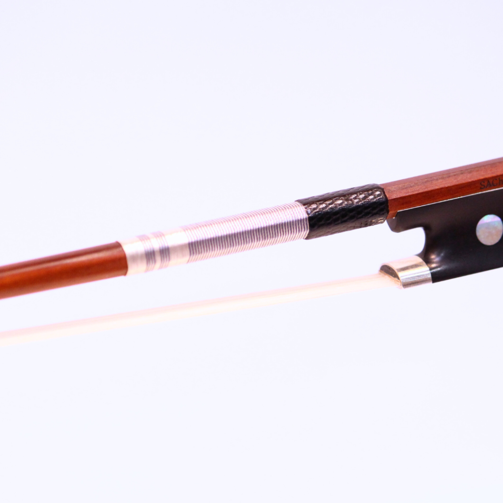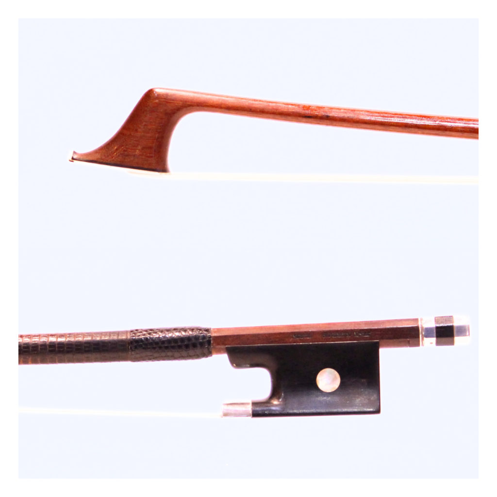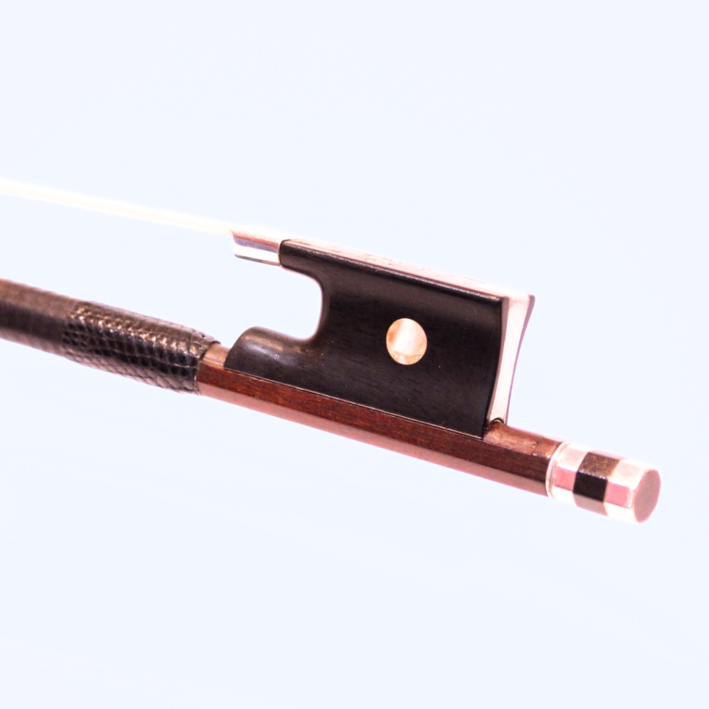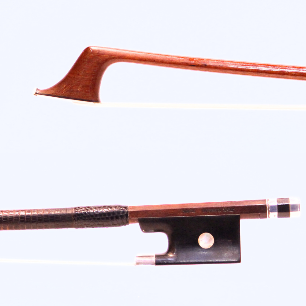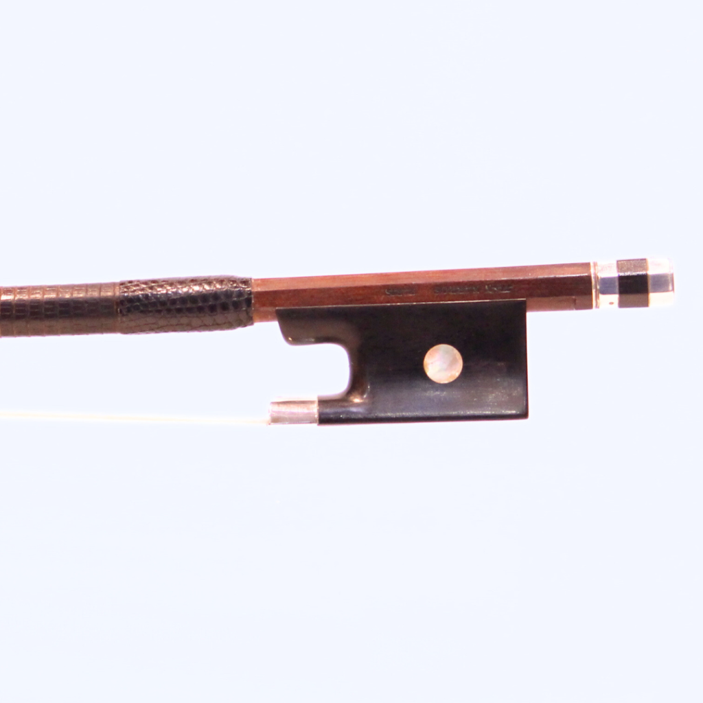 オールド・モダン弓同様に個人製作家の弓も値上がりが続く中で、比較的リーズナブルな価格で手に入れることができるメーカーです。師であるギョーム氏のシルバーランクは力強いスティックの印象が強いですが、当弓はフレンチらしい強さと音色のバランスが取れた弓です。
