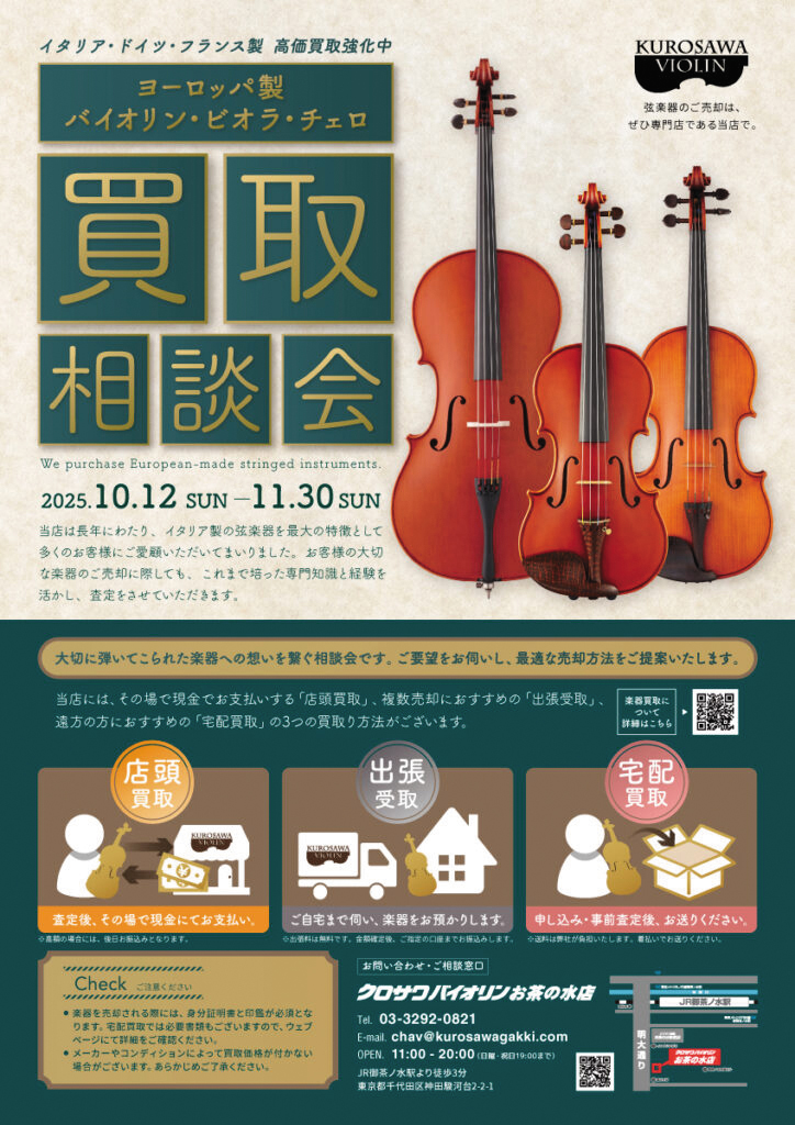 クロサワバイオリンお茶の水店まで楽器をお持ち込みください。