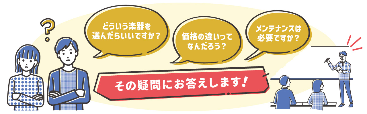 音楽大学出身のスタッフと、職人気質なベテランリペアマンが皆様の楽器選びを全力サポートいたします!